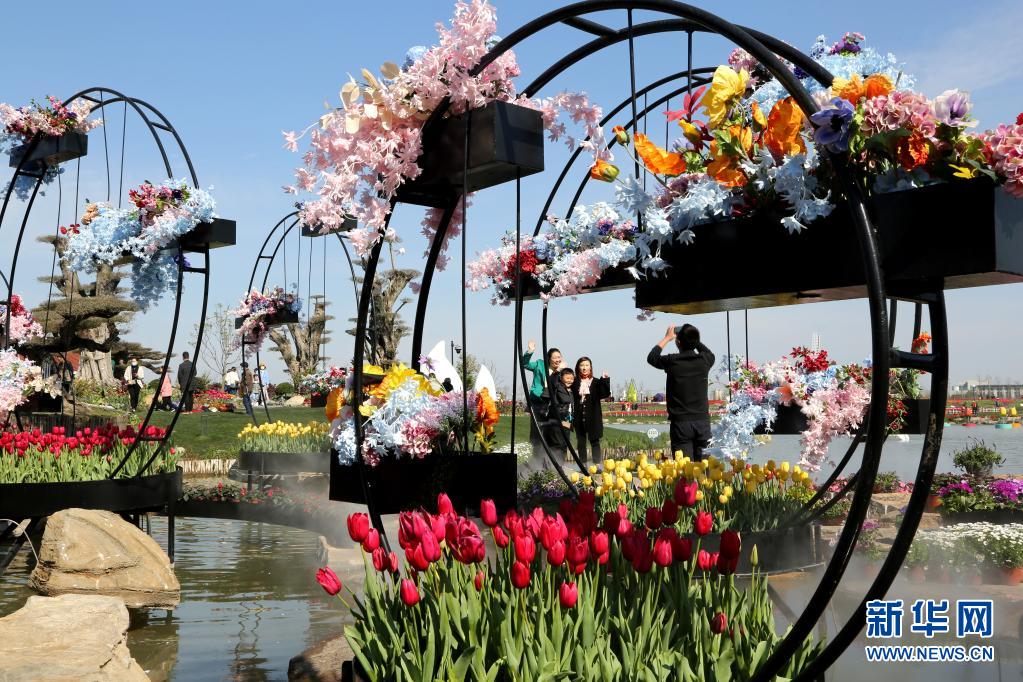 4月5日,游人在江蘇省鹽城市大豐區(qū)荷蘭花海景區(qū)拍照賞花。