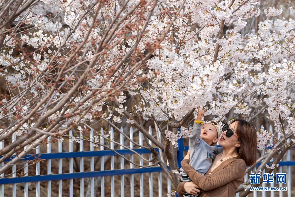 4月7日,游人在山西省太原市玉泉山城郊森林公園賞花。近日,山西省太原市玉泉山城郊森林公園栽植的近25萬(wàn)株各類櫻花競(jìng)相盛開,吸引不少市民前來觀賞。新華社記者 楊晨光攝