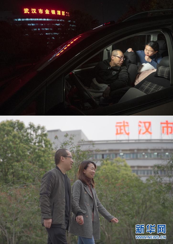 這是一張拼版照片,上圖為:2020年2月22日晚,武漢市金銀潭醫(yī)院的醫(yī)護(hù)夫妻涂盛錦(左)與曹珊在車內(nèi)聊天。從大年初一開(kāi)始,兩人就住進(jìn)車?yán)?,為在疫情中搶救病患,?zhēng)分奪秒,以車為家;下圖為:3月23日,武漢市金銀潭醫(yī)院的醫(yī)護(hù)夫妻涂盛錦和曹珊在下班路上。新華社記者 熊琦 攝