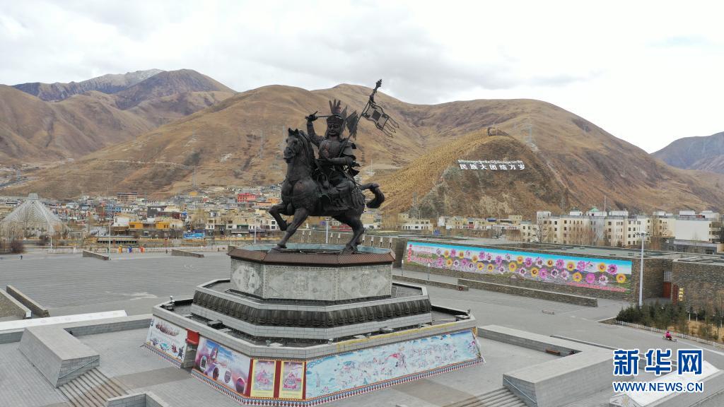 這是青海省玉樹藏族自治州玉樹市格薩爾王廣場(chǎng)(3月10日攝,無(wú)人機(jī)照片)。