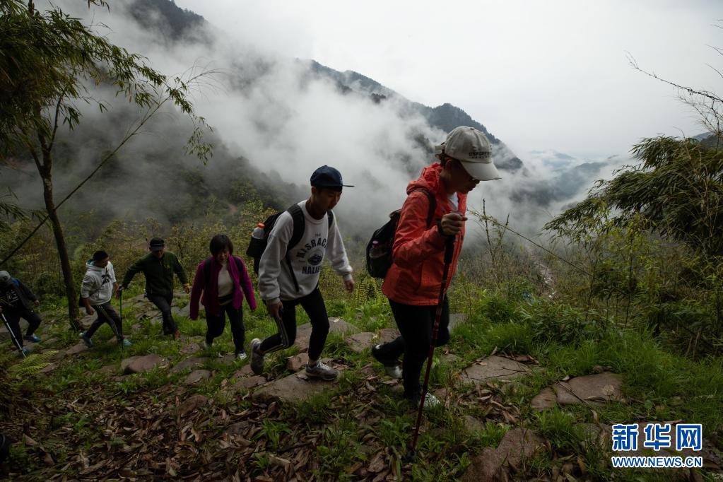 4月18日,徒步愛(ài)好者沿著大相嶺茶馬古道穿越。新華社記者 江宏景 攝