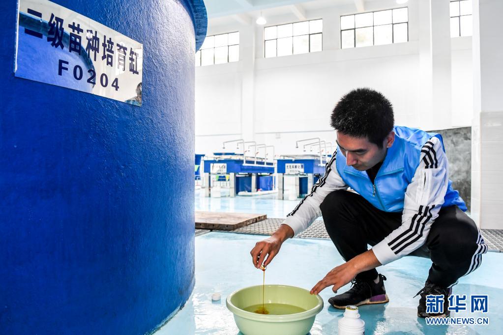 大藤峽魚類增殖放流站位于廣西桂平市大藤峽水利樞紐南木江副壩旁,是目前珠江流域規(guī)模最大的魚類增殖放流站,主要承擔野生、珍稀魚類增殖繁育、保護、救治等職能,年最大放流規(guī)模約358萬尾,其中珍稀魚類98萬尾。目前,大藤峽魚類增殖放流站的工作人員正在進行魚苗繁育工作。