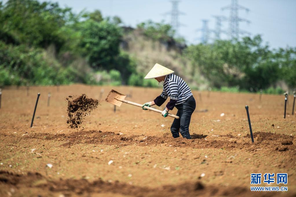 4月20日,貴州省六盤(pán)水市六枝特區(qū)木崗鎮(zhèn)農(nóng)民在田地里勞作。