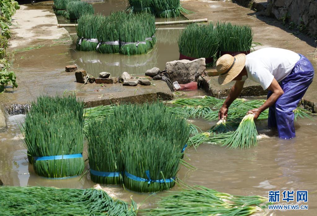 4月20日,浙江省樂(lè)清市雁蕩鎮(zhèn)的香蔥種植專(zhuān)業(yè)合作社社員在清洗剛采摘的香蔥。