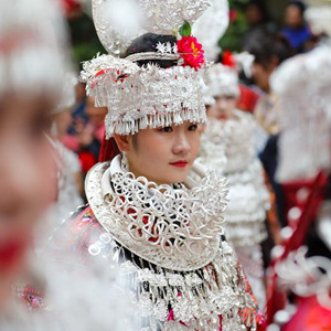 今年姊妹節(jié)前夕,母親張?jiān)雅畠菏⒀b的銀飾拿到銀飾店里進(jìn)行清洗,希望女兒能在盛裝巡演上展示最美的一面。4月25日姊妹節(jié)當(dāng)天,張佳麗早早起床,在母親和同學(xué)的幫助下,開始化妝、穿衣、佩戴銀飾,一直忙到9點(diǎn)才準(zhǔn)備完畢。身著盛裝站在巡演隊(duì)伍中,張佳麗說:“這是我們苗族同胞最大的節(jié)日,無論身處何地,我都會(huì)如約回家參加活動(dòng)!”