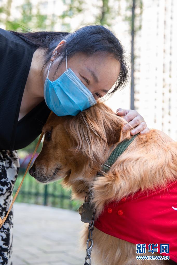 生活在南京市建鄴區(qū)的陳冬梅與導(dǎo)盲犬“果凍”在一起(4月4日攝)?! ⌒氯A社發(fā) (張夢(mèng) 攝)