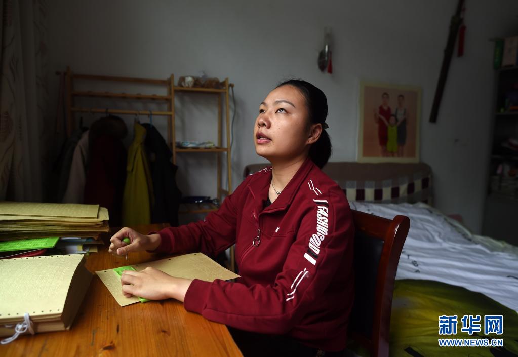 4月28日,葉景芬在位于龍泉市西街街道河星村的家中進(jìn)行盲文書寫。