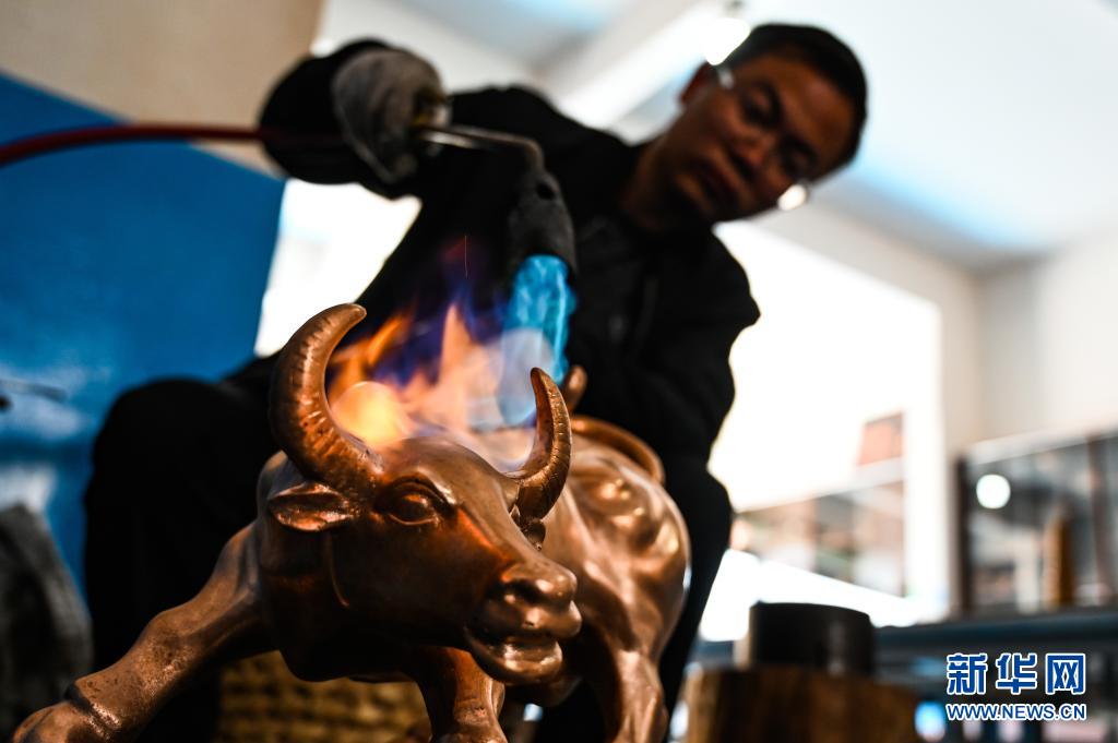 地處滇東北、烏蒙山腹地的云南會(huì)澤縣流傳著具有300多年歷史的斑銅制作工藝。斑銅工藝復(fù)雜,要采用高品位的銅為原料,經(jīng)過20余道工序制作而成。產(chǎn)品“妙在有斑,貴在渾厚”,風(fēng)格獨(dú)樹一幟。33歲的張偉是會(huì)澤“張氏斑銅”的第十三代傳人。自幼深受地域文化和家庭熏陶的他,大學(xué)畢業(yè)后,返鄉(xiāng)從事斑銅制作工作。在會(huì)澤古城的“銅匠街”,張偉創(chuàng)辦了斑銅傳習(xí)館,不斷研發(fā)斑銅新產(chǎn)品、傳承著這項(xiàng)非遺技藝?!鞍咩~是一種情感、一種文化,希望在我們這代人的努力下能夠更好地將它傳承下去,讓更多人了解斑銅的獨(dú)特魅力。”張偉說。