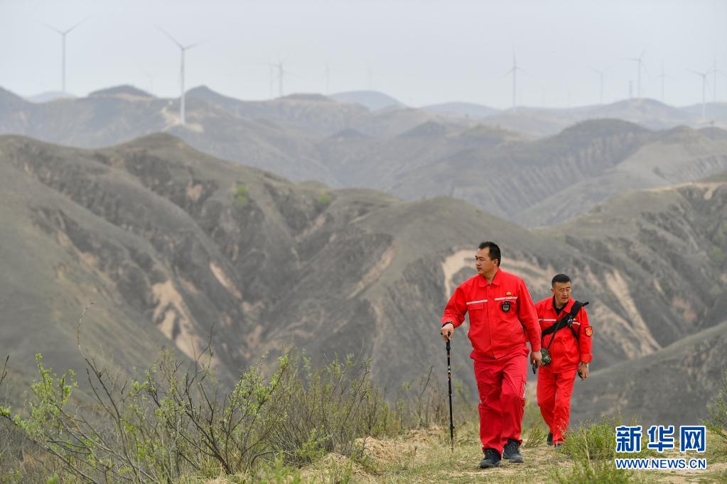 4月27日,巡線(xiàn)隊(duì)員張偉偉(左)、張浩軍在巡線(xiàn)途中。新華社記者 張博文 攝