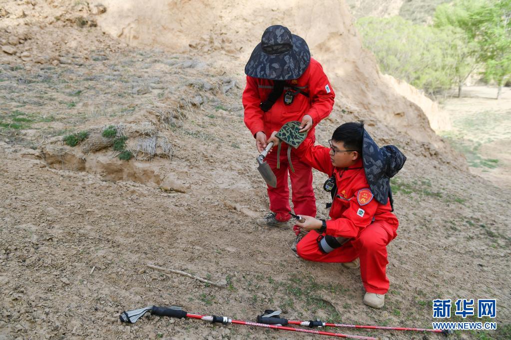 4月28日,巡線隊(duì)員侯勵(lì)峰、曹碩(右)在巡線途中組裝工具。新華社記者 張博文 攝
