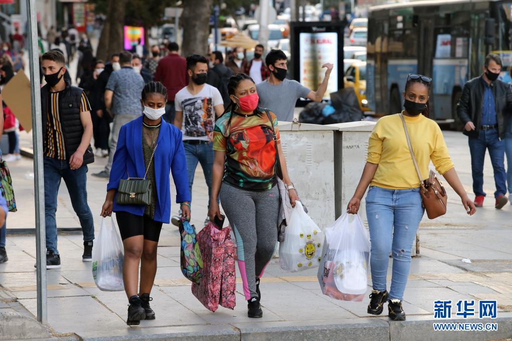 4月29日禁令實施前,人們戴口罩在土耳其安卡拉購物。