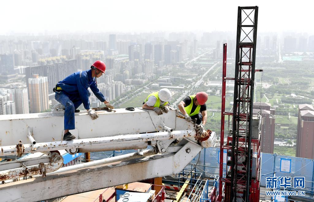 5月1日,在陜西西安未央?yún)^(qū)一項(xiàng)目施工現(xiàn)場(chǎng),中建七局四公司的工作人員在作業(yè)。