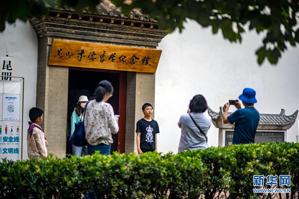 5月1日,游客在昆明朱德舊居紀念館拍照留念。