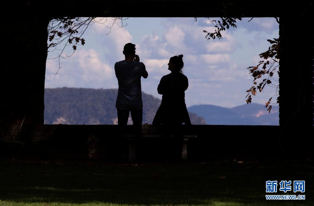 5月3日,兩位游客在澳大利亞悉尼西部藍山地區(qū)的一個觀景臺駐足。