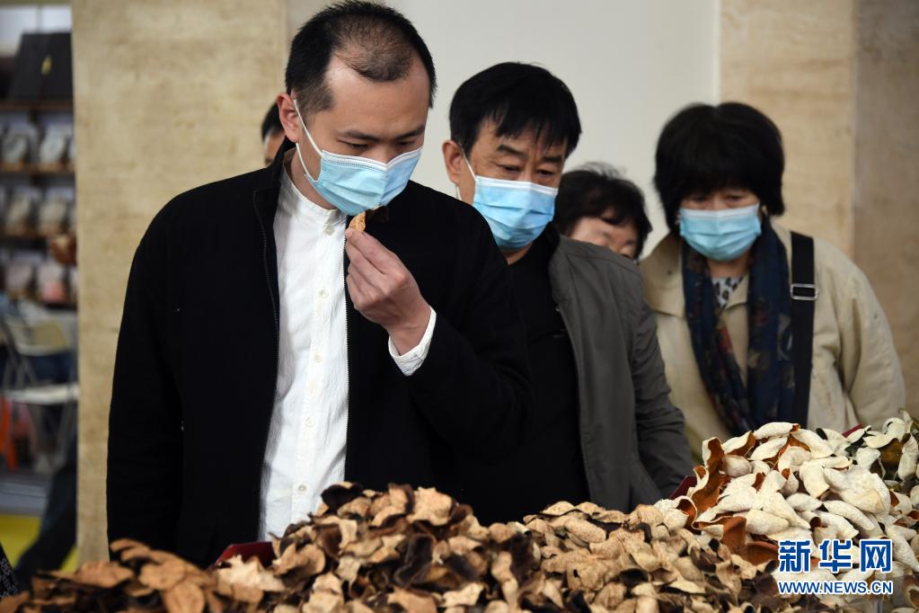 李卓澄在第十三屆中國(guó)(北京)國(guó)際茶業(yè)及茶藝博覽會(huì)中了解展出的陳皮(4月23日攝)。新華社記者 任超 攝