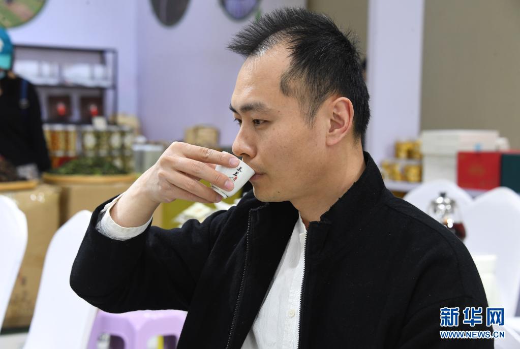 李卓澄在第十三屆中國(guó)(北京)國(guó)際茶業(yè)及茶藝博覽會(huì)上品茶(4月23日攝)。新華社記者 任超 攝