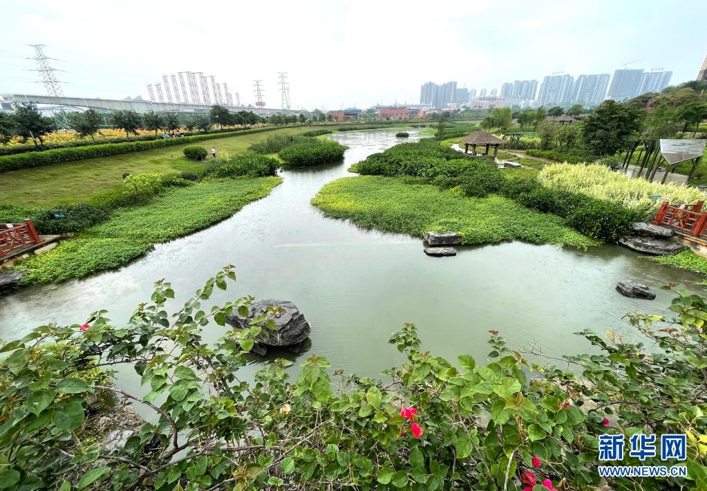 立夏時節(jié),廣西南寧市那考河濕地公園內(nèi)草木吐翠、鮮花斗艷,一派繁茂景象。