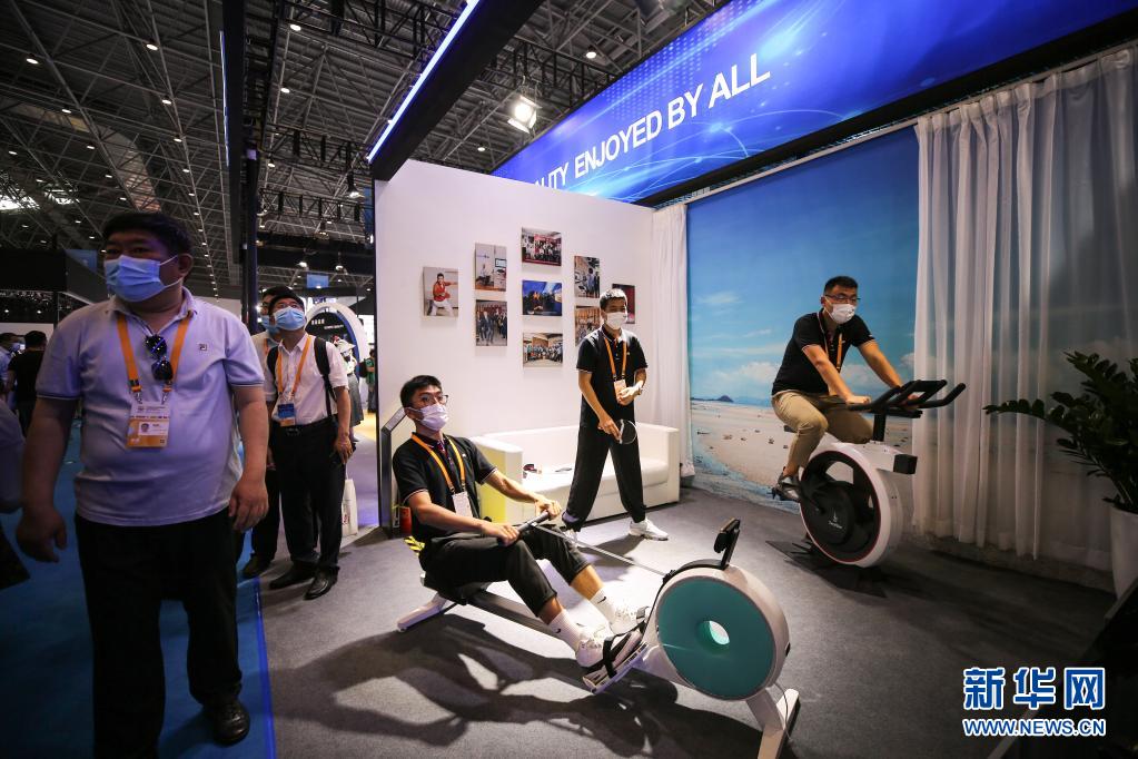 5月7日,觀眾在消博會現(xiàn)場體驗(yàn)智能運(yùn)動(dòng)產(chǎn)品。