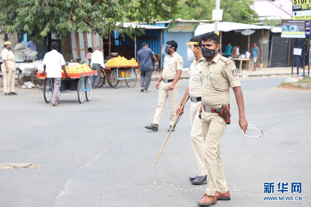 5月10日,警察在印度卡納塔克邦首府班加羅爾街頭執(zhí)勤。