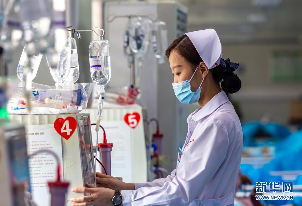 5月11日,護(hù)士在貴州省黔西市人民醫(yī)院血透室核對(duì)透析參數(shù)。