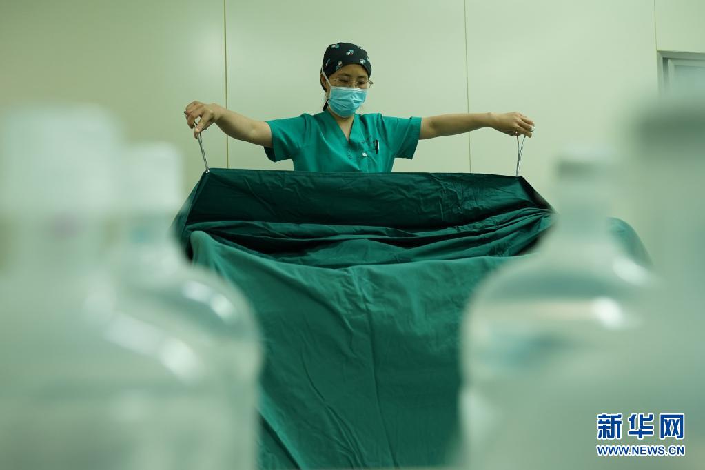 5月11日,河北省邢臺市巨鹿縣醫(yī)院手術(shù)室護士在做術(shù)前準備。