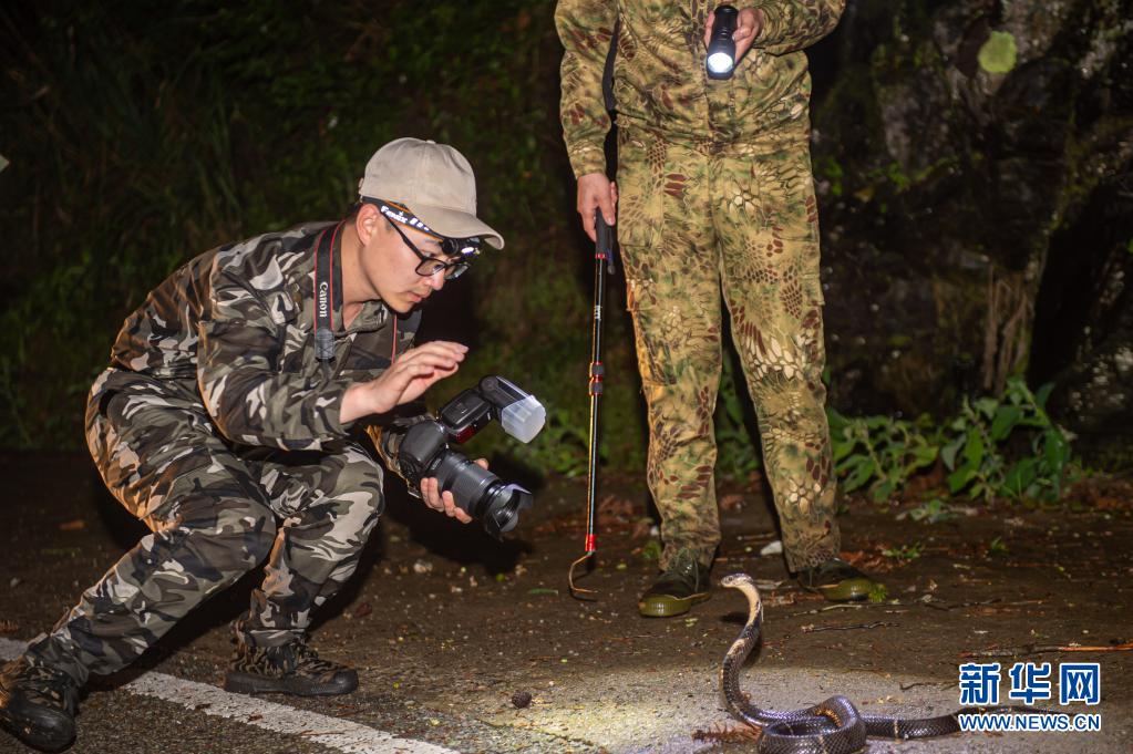 5月11日,南京環(huán)境科學(xué)研究所工作人員為眼鏡蛇拍照制作電子標(biāo)本。