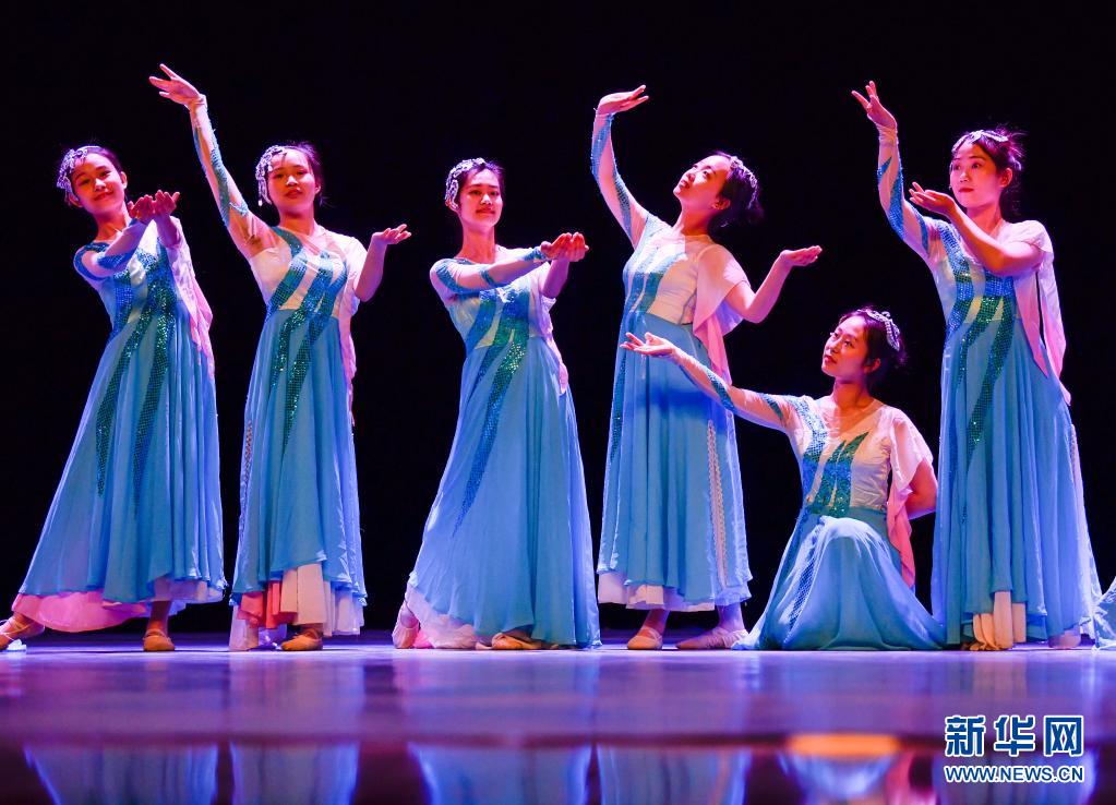 天津理工大學(xué)聾人工學(xué)院的舞蹈隊(duì)員們?cè)趯W(xué)校的劇場(chǎng)里進(jìn)行彩排(5月10日攝)。新華社發(fā)(孫凡越攝)