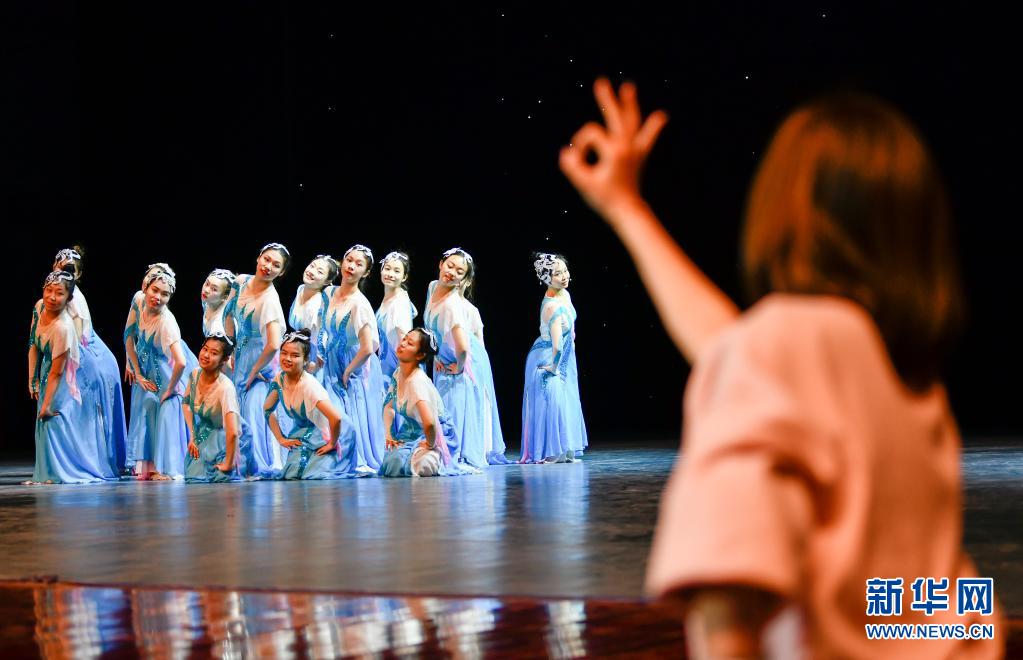 在天津理工大學的劇場里,天津市殘疾人文藝體育訓練指導中心舞蹈老師韓菲用手語為學生指揮(5月10日攝)。新華社發(fā)(孫凡越攝)