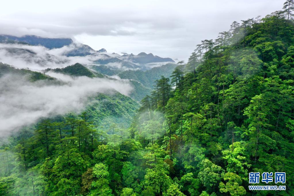 5月17日,武夷山國家公園桐木村附近群山云霧繚繞(無人機(jī)照片)。