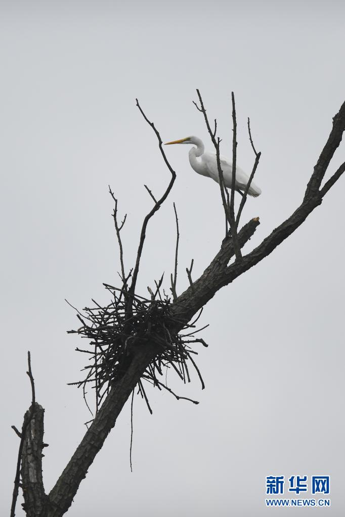 隨著天氣轉暖,大批鷺鳥飛到湖南益陽沅江市的南洞庭湖區(qū)筑巢、棲息、繁殖。
