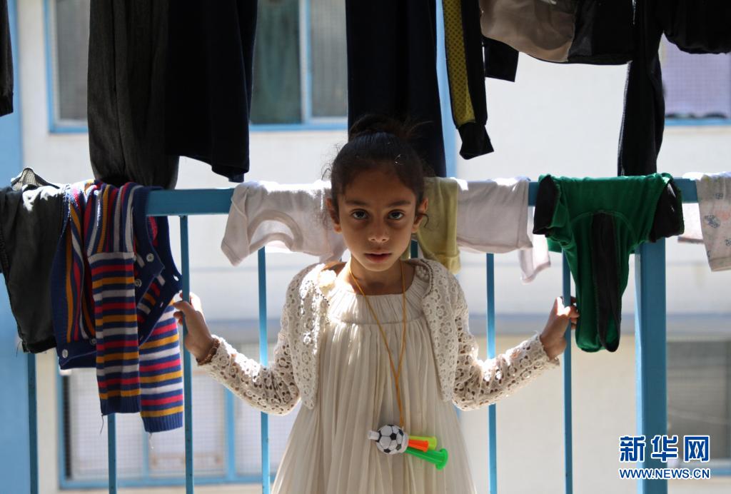 5月19日,受空襲影響而逃離家園的7歲巴勒斯坦兒童達娜·法拉杰在加沙城的一所學(xué)校臨時棲身。