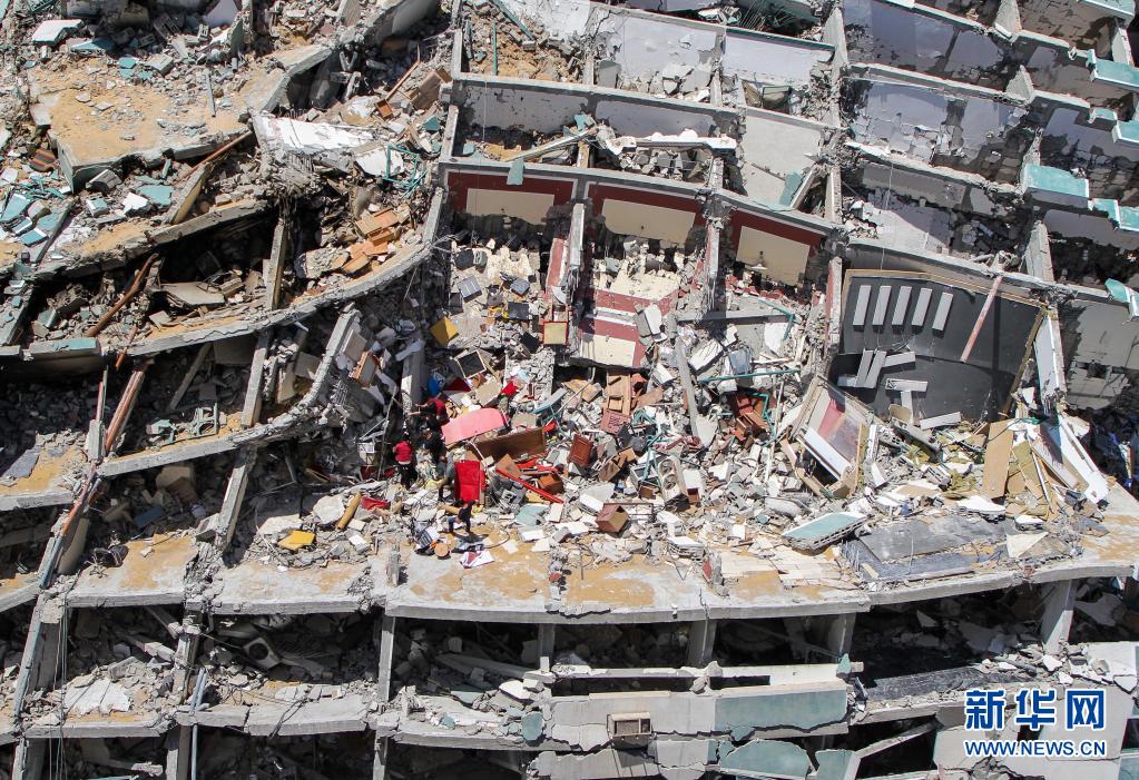 這是5月23日在加沙城拍攝的遭以軍空襲損毀的賈拉塔。5月10日以來,以色列與加沙地帶武裝組織之間爆發(fā)嚴(yán)重沖突。20日晚,哈馬斯與以色列方面各自宣布,雙方已達成?;饏f(xié)議,?;饛?1日凌晨開始。新華社發(fā)(里澤克·阿卜杜勒·賈瓦德攝)
