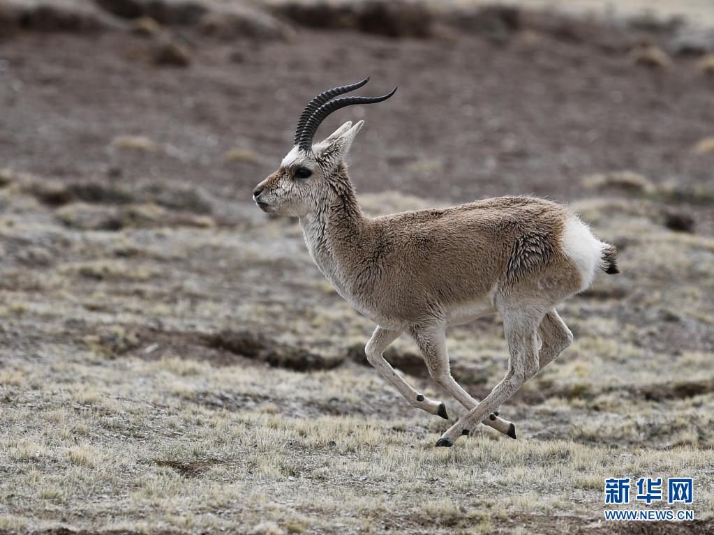 5月25日,一只藏原羚在三江源國(guó)家公園黃河源園區(qū)內(nèi)奔跑。