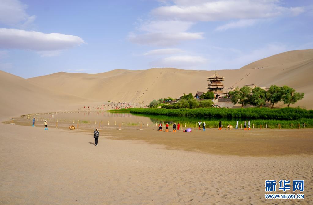 時下,位于甘肅省敦煌市的月牙泉碧波蕩漾,吸引不少游客前來觀光。