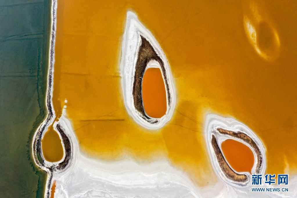 近日,隨著氣溫不斷升高,山西運(yùn)城鹽湖呈現(xiàn)五彩斑斕的景象。