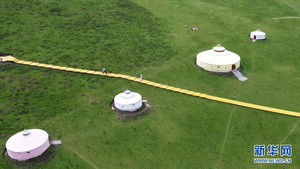 這是6月8日在甘肅省定西市岷縣境內(nèi)拍攝的狼渡草原(無人機(jī)照片)。