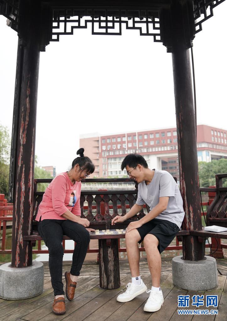 6月2日,趙建軍和母親一起在校園內(nèi)下棋。新華社記者胡晨歡攝