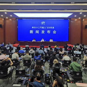 6月16日,神舟十二號載人飛行任務(wù)新聞發(fā)布會(huì)在酒泉衛(wèi)星發(fā)射中心召開(手機(jī)拍攝)。