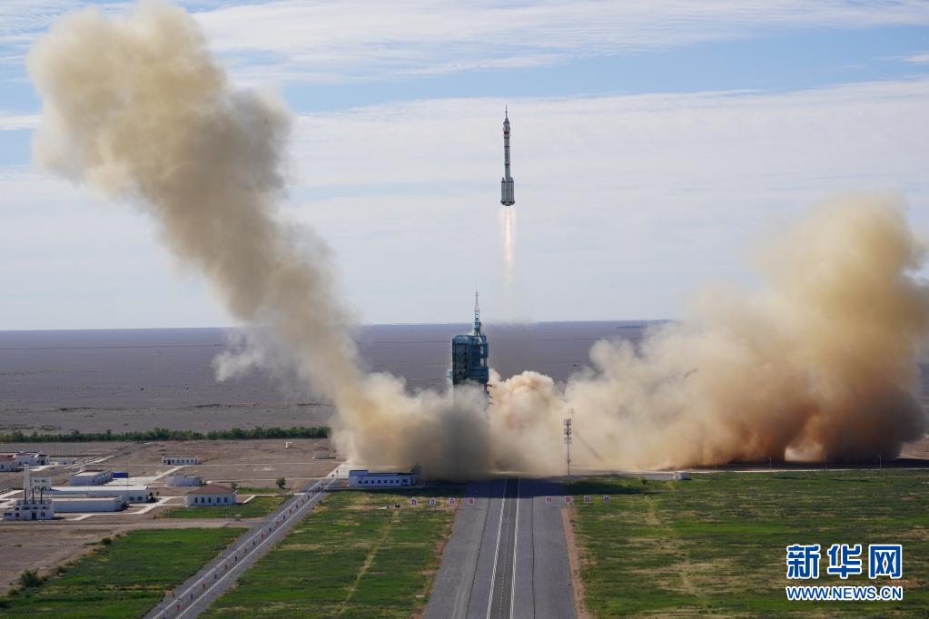 6月17日,搭載著神舟十二號載人飛船的長征二號F遙十二運(yùn)載火箭在酒泉衛(wèi)星發(fā)射中心點(diǎn)火升空。新華社記者 李剛 攝