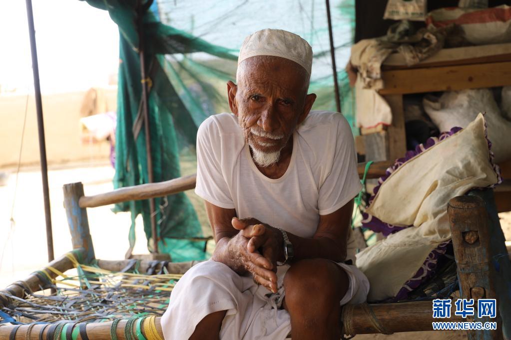 6月17日,一名老人坐在也門北部哈杰省一座難民營的帳篷內(nèi)。