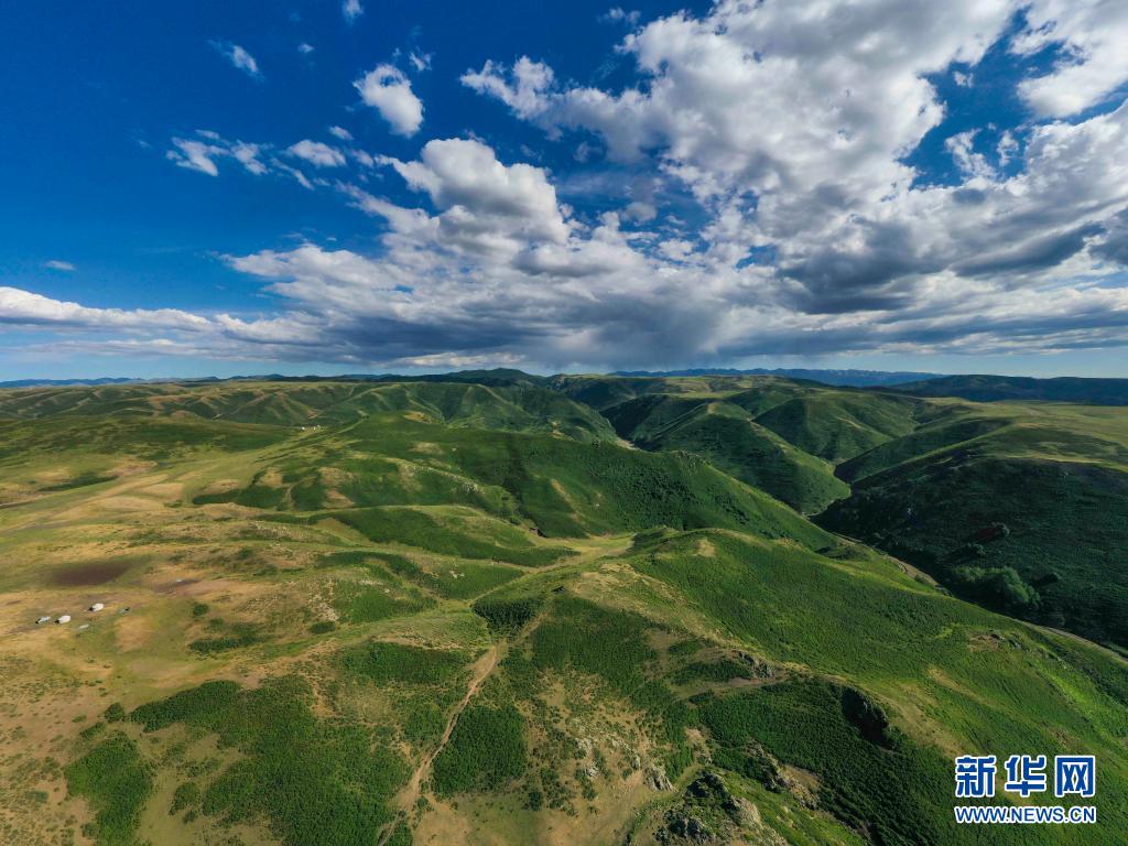新疆裕民縣巴爾魯克山區(qū)夏牧場景觀(6月16日攝,無人機照片)。