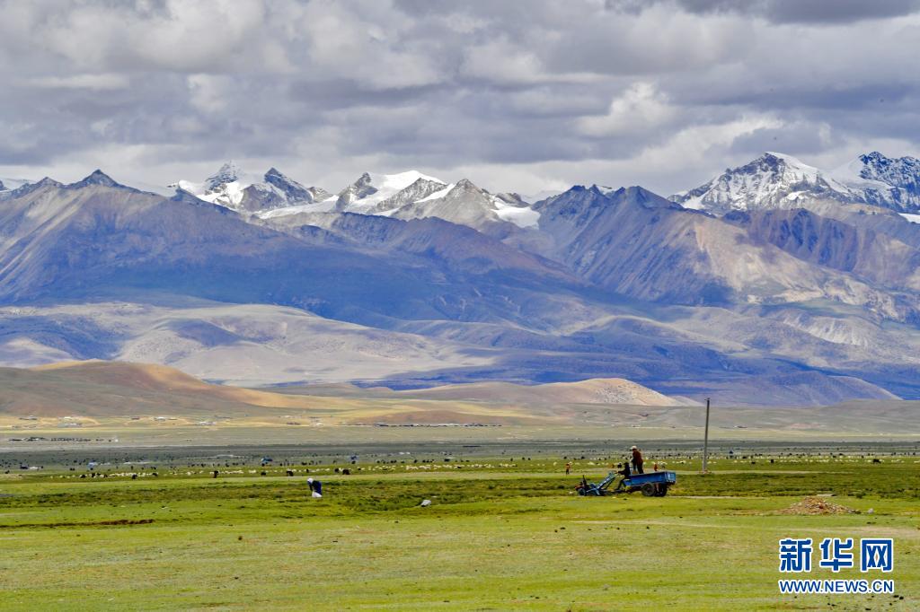 夏日里,西藏拉薩市當(dāng)雄縣境內(nèi)的天然草場(chǎng)綠草如茵,景色優(yōu)美。