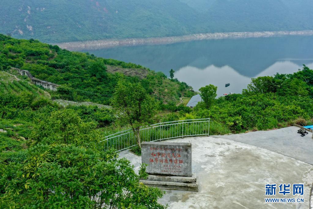 紅軍搶渡烏江江界河戰(zhàn)斗遺址紀念碑(5月20日攝,無人機照片)。新華社記者 歐東衢 攝