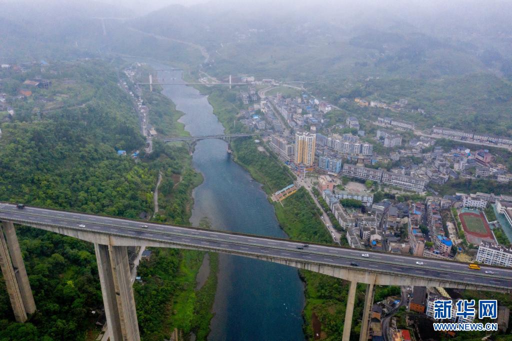 貴州省烏江特大橋(4月19日攝,無人機照片)。新華社記者 歐東衢 攝