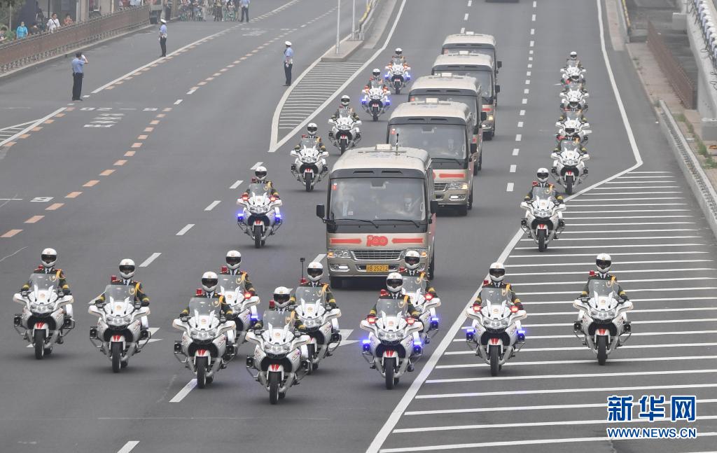 6月29日,慶祝中國共產(chǎn)黨成立100周年“七一勛章”頒授儀式在北京人民大會堂金色大廳隆重舉行。這是“七一勛章”獲得者集體乘坐禮賓車,由國賓護衛(wèi)隊護衛(wèi)前往人民大會堂。新華社記者 翟健嵐 攝