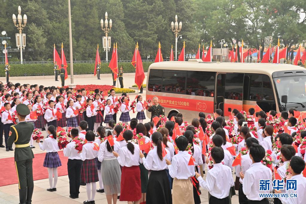 6月29日,慶祝中國共產(chǎn)黨成立100周年“七一勛章”頒授儀式在北京人民大會(huì)堂金色大廳隆重舉行。這是“七一勛章”獲得者抵達(dá)人民大會(huì)堂。新華社記者 岳月偉 攝
