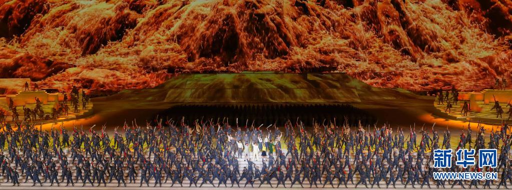 6月28日晚,慶祝中國共產黨成立100周年文藝演出《偉大征程》在北京國家體育場盛大舉行。這是情景大合唱《怒吼吧 黃河》。