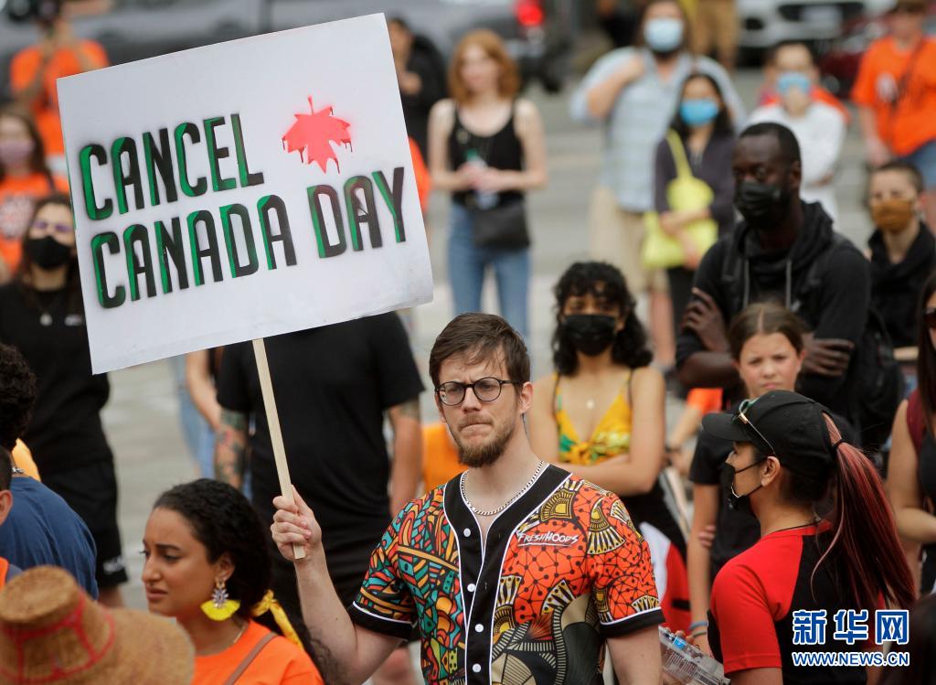 當天是加拿大日,上千名抗議者在溫哥華集會,悼念加拿大在強制“同化”原住民過程中遭到殘害的兒童,呼吁取消加拿大日的慶祝活動。