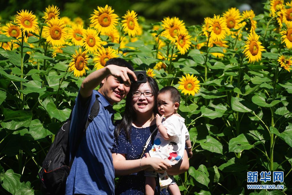 日前,北京奧林匹克森林公園北園的向日葵進(jìn)入盛花期,眾多市民和游客前來(lái)觀賞。