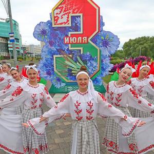 7月3日,演員在白俄羅斯首都明斯克街頭表演舞蹈。